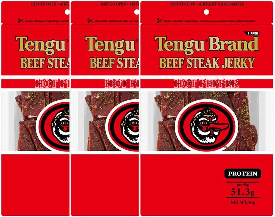 厳選された牛もも肉を使用し、醤油をベースとした味付けのビーフステーキジャーキーです。しっかりとした歯応えが特長で、噛めば噛むほど味わいを感じられる商品です。ビール等のおつまみに最適な商品です。さらに胡椒としょうがの辛味を利かせたホットタイプです。