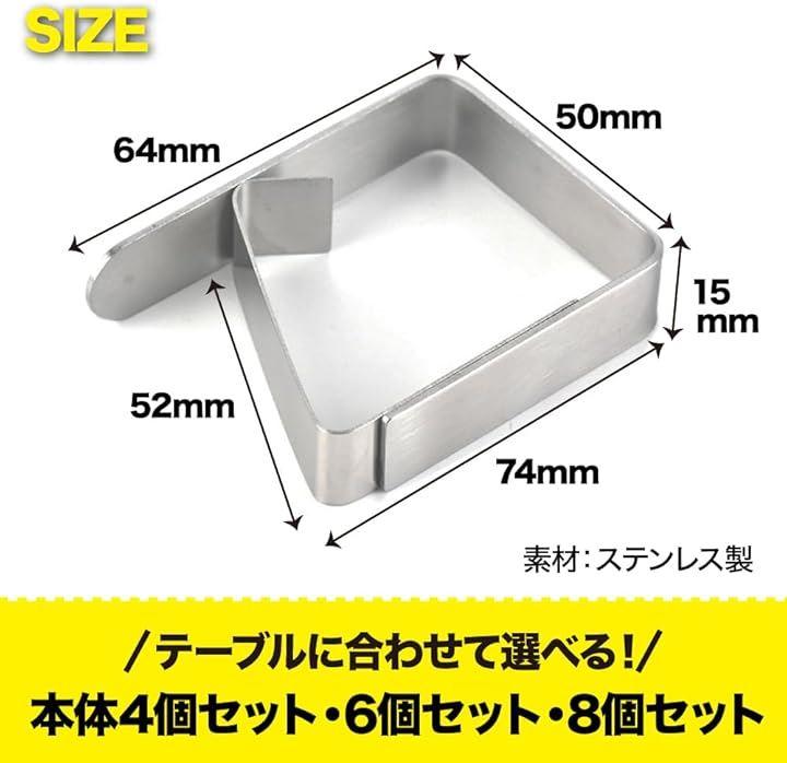「商品詳細」本体6個、サイズ:横7.4cm,縦5cm,幅1.5cm、素材:ステンレス製