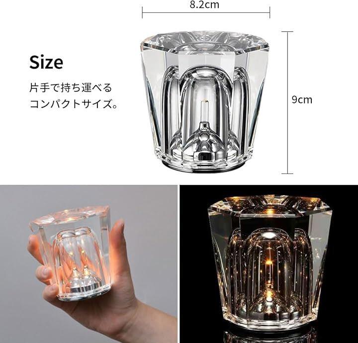 三段階の調光モードで柔軟な雰囲気作り このクリスタルランプは、3つの異なる調光モードを備えており、ランプの底部にあるスイッチで簡単に切り替え可能です。
