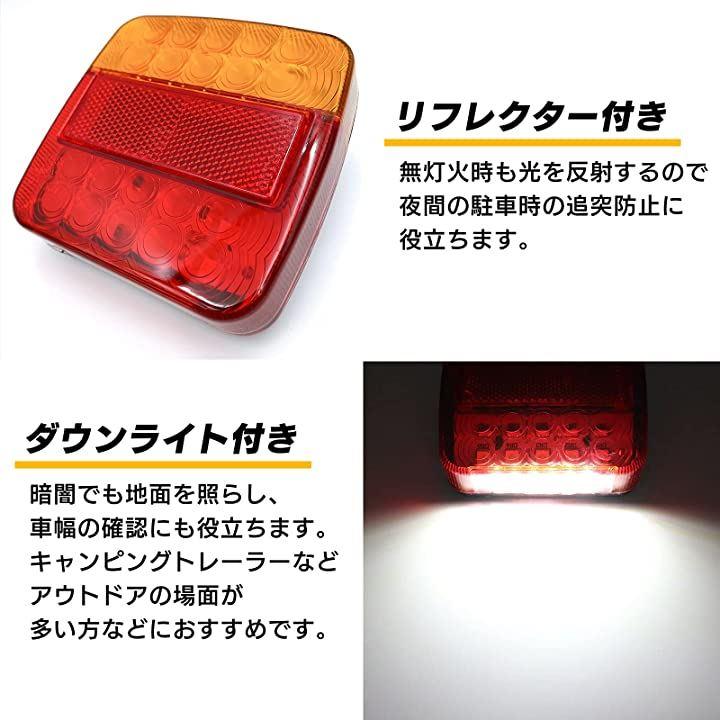 テールランプ DC12V LED リフレクター 付き ダウンライト 角 2個 セット