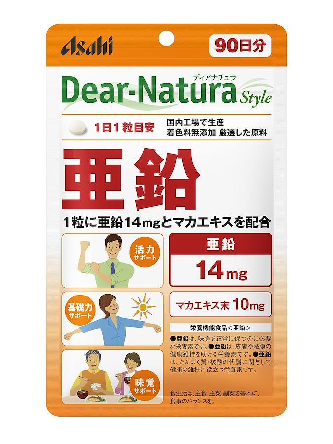 ※商品リニューアルに伴い、パッケージの異なる商品が届く場合がございます。ご了承ください。 ディアナチュラスタイル 亜鉛 90粒(90日) 本品は、1日1粒で「亜鉛(14mg)」と「マカエキス末(10mg)(製造工程中、1粒中に配合)」が摂取できます。 栄養機能食品:亜鉛 「食事のバランスが気になる方」「海藻類不足が気になる方」「毎日を元気に過ごしたい方」におすすめの商品です。 ※食生活は、主食、主菜、副菜を基本に、食事のバランスを。<br>※商品をご利用いただく際は、必ずお手元の商品の表示をご確認の上、ご使用ください。<br>※商品リニューアルに伴い、パッケージの異なる商品が届く場合がございます。ご了承ください。 ■重要なお知らせ