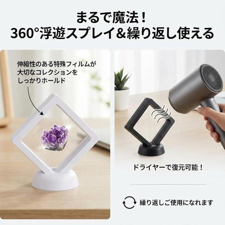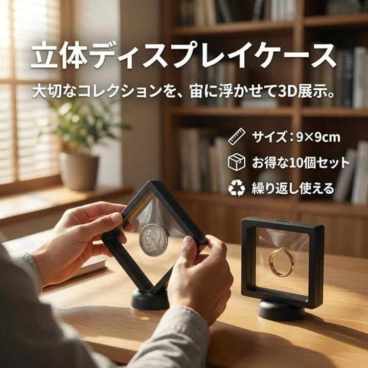 360度眺められる、3Dディスプレイケース 10個セット」お気に入りのコインやジュエリーが重力を無視して空中に静止しているかのような、不思議で美しい「浮遊感」。