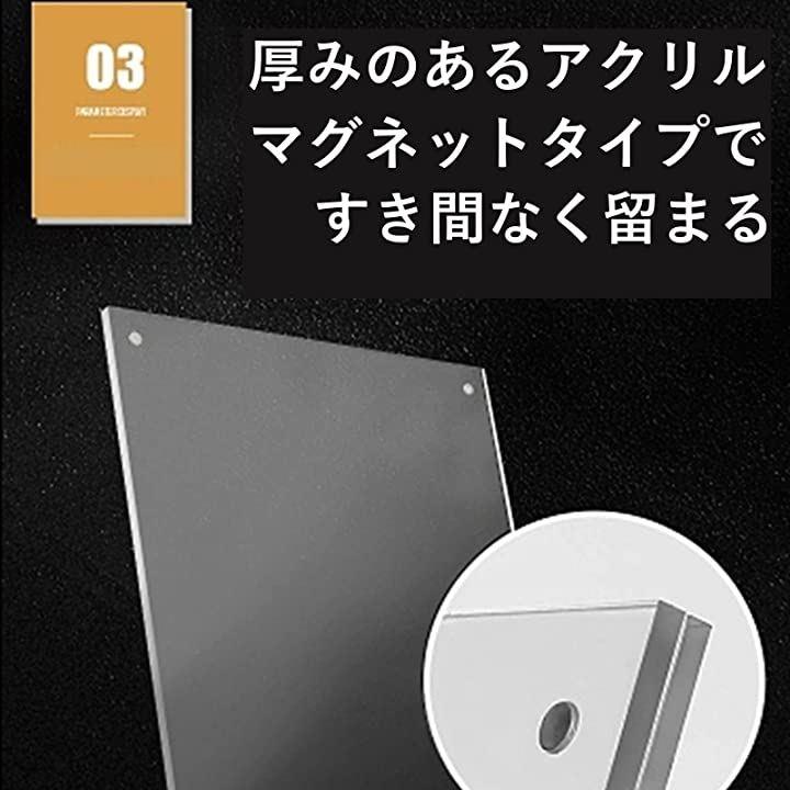 ・「差し替えも簡単」:透明アクリルボードはマグネットタイプになっており、簡単にPOPの差し替えができます。