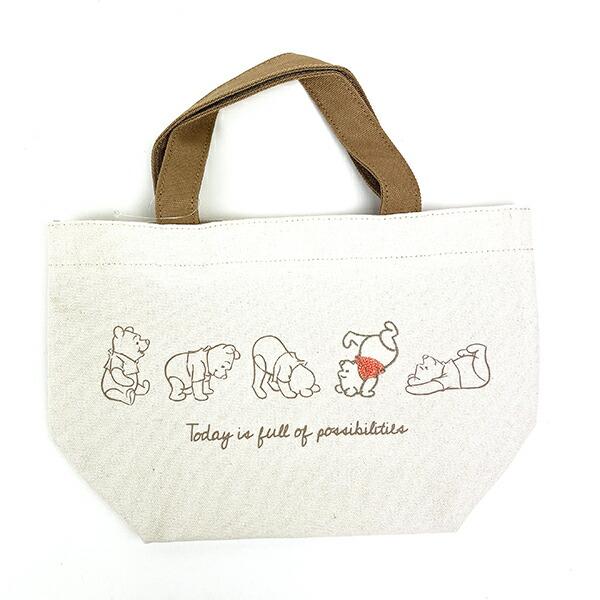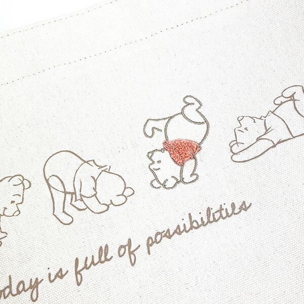 プーさんのイラストの1部分が刺繍になっているおしゃれなトートバッグです。内ポケット付きで便利に使えます♪A4サイズが丸々収まるので通勤通学に◎