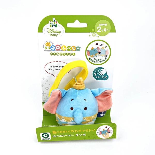 布製のおきあがりこぼしです。お子様が触ったり揺らしたりすると「リンリン」と音をさせながら元の位置に戻ってきます。耳の部分は「パリパリ」と触感や音を楽しむことで脳への刺激となり成長を促してくれます。お出かけ時にベビーカーなどにも取り付け可能なベルト付きです。サイズはギフト用パッケージサイズ表記となります。ギフトにも人気商品です。ダンボは「雲」をイメージした和柄デザイン。空の太陽の近くにあることから、明るい未来を表す紋様デザインとなっております。