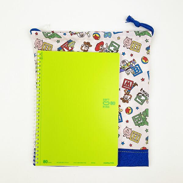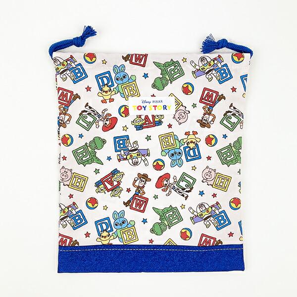 トイストーリーの巾着(中)です。学校に持って行くアイテムやお弁当を入れるのにもぴったり☆ぜひお子様やお孫様のお好きなキャラクターを選んでみてください♪