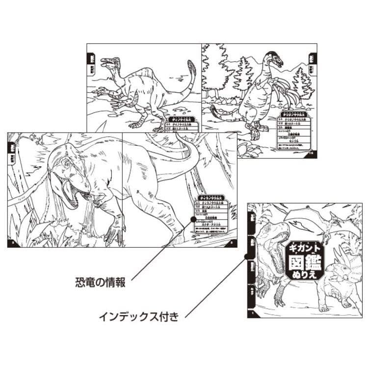 大迫力 恐竜いっぱいの[ディノ アース]グッズにまたまたKOOLなnewアイテム登場こちらはぬりえをしながら恐竜の情報を学べる[ギガント図鑑塗り絵]古生物学者 芝原暁彦博士の監修です。塗り絵はお子様の色彩感覚を高めてくれます。ほかにもいろいろあるのでお気に入りを揃えてください。サイズ:約245x245mm(本文48枚)[Made in Japan]