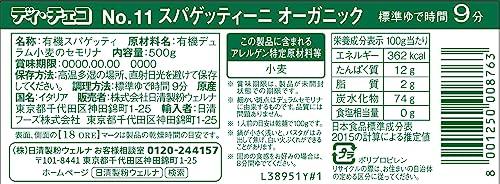 原材料:デュラム小麦のセモリナ商品サイズ(高さx奥行x幅):31cm×8cm×9cm内容量:500g×4袋「ディ・チェコ」ならではの、吟味された原料を使用し、こだわりの製法で丁寧につくったオーガニックのディチェコパスタです。No11スパゲティーニは、麺の太さが1.6mmでどんなパスタソースにもよくあう標準的な麺です。【重要】メーカーによる商品リニューアルに伴いパッケージ(内容量も含む)変更が行われた場合、新パッケージでお届け致します事ご了承願います。