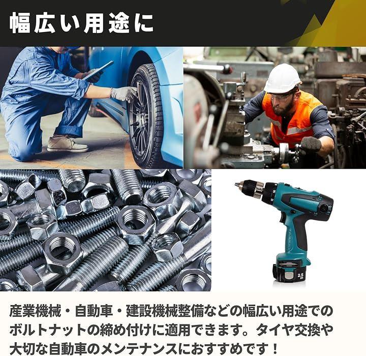 「幅広い用途に」 産業機械・自動車・建設機械整備などの幅広い用途でのボルトナットの締め付けに適用できます。