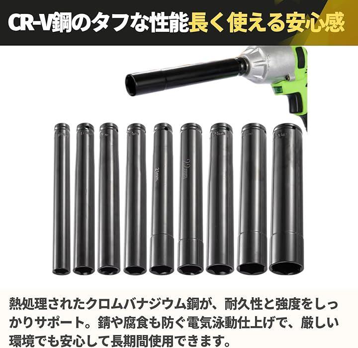 「エクストラロングデプスで狭い場所も楽々作業」 このディープインパクトソケットは、エクストラロング設計により、長いボルトにも対応し、狭いスペースでもしっかりとアクセスできます。