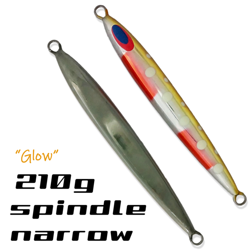 スピンドルの強みでもある、上げ下げ時のアピールを抑えたナチュラルアクションでの喰わせ。 スピンドルナローはこの強みに、抜け過ぎない程よい抜け感でよりスピード感のある、またはメリハリのある巻きのアクションを比較的容易に演出。 青物、根魚問わず、興味を持った魚に口を使わせます。 フロント重心がパラレル(平行姿勢)フォールを容易にし、フォールアクションの自走を抑制するので、太刀魚など捕食が下手で歯のある魚の、ミスバイトによるリーダー切れも減らしてくれます。巻きの釣りはスピード感もあり、上げ下げアクションを自在に組み合わせる等、得られる操作感は、使う楽しさを感じるジグの一つです。