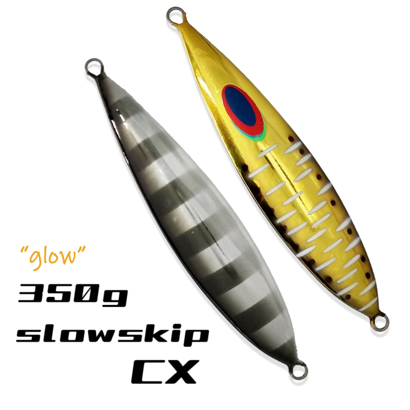 ディープライナーの基本のジグとして位置づけされている、スロースキップVB・CX・FBの中で、CXはジャーク時の動きのキレ、レスポンス、抜け感の良さは、早い潮流や二枚潮など難しい状況にも対応でき、比較的汎用性の高いジグでもあることから、パイロットジグとして状況が分からない時に最初に入れることも多いジグです。またその特徴から遊泳力の高い対象魚にも有効で、早い動きでジグを追わせ、フォールアクションで見せるスパイラルフォールは目スレで方向性を失い落下するベイトにも似ており、逃げるベイトと弱ったベイトの演出の組み合わせは、青物・根魚にも有効です。