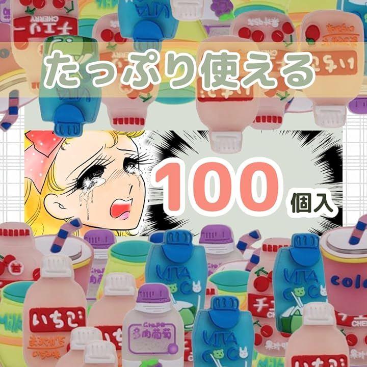 盛り盛り100個入り。たっぷり使えるボリュームで、デコ初心者から上級者まで大満足。 ポップで可愛いパーツをランダムに100個詰め合わせてお届けします。