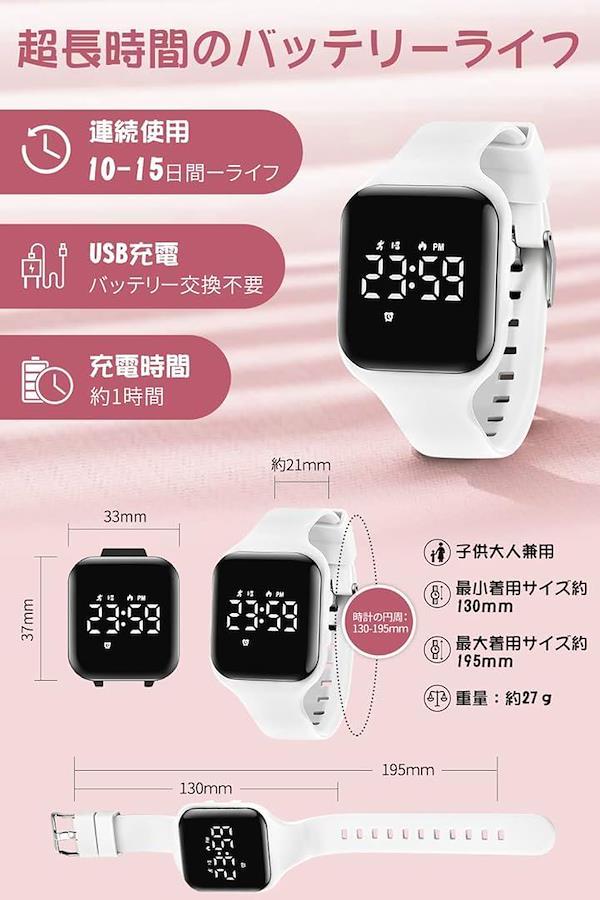 [USB充電式-長持ちバッテリー]:充電式 デジタル腕時計は便利な充電式のデザインを採用しており、使いやすく、電池交換も必要ありません。