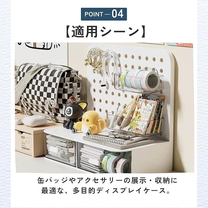 「適用シーン」缶バッジやアクセサリーの展示・収納に最適な、多目的ディスプレイケース。