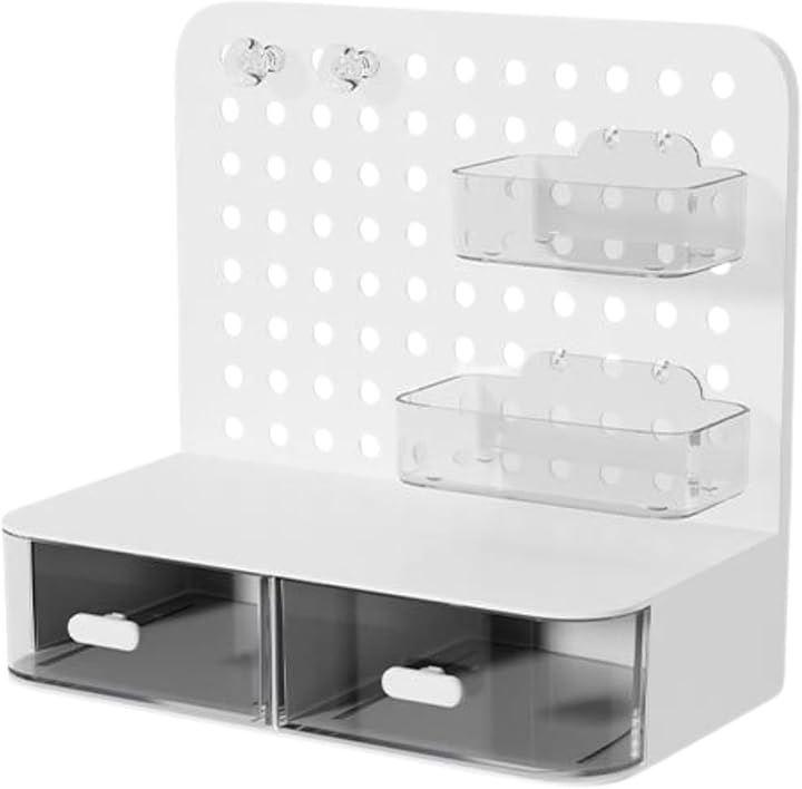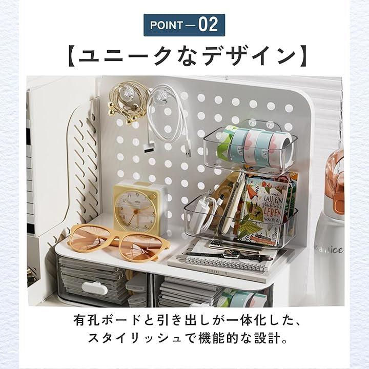 「ユニークなデザイン」有孔ボードと引き出しが一体化した、スタイリッシュで機能的な設計。