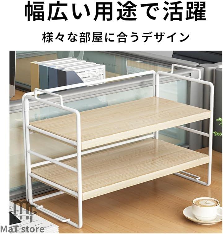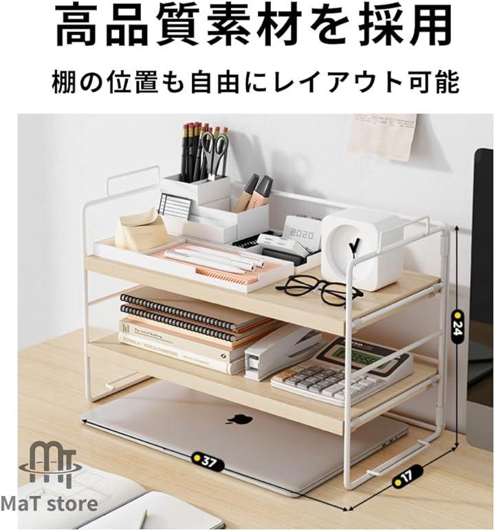 「高い収納力と幅広い用途」デスク上収納ラックは厚みのある天然木化粧繊維板を採用されており、いろいろな場所に使用できる卓上収納ラックです。