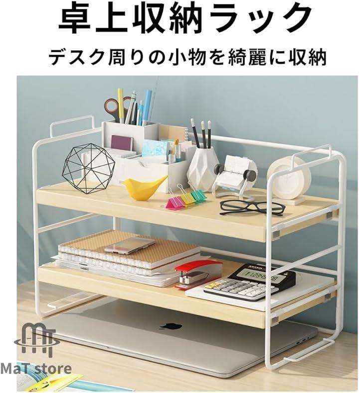デスク 卓上ラック 棚 2段 おしゃれ 収納棚 卓上収納 デスク上置き棚 木xホワイト