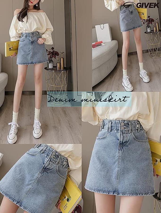 デニムスカート レディース ハイウエスト ミニスカート 美脚 脚長効果 Aライン 台形 ベルト通し付き ジーンズ生地 タイトスカート