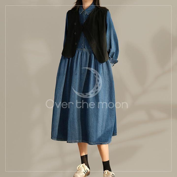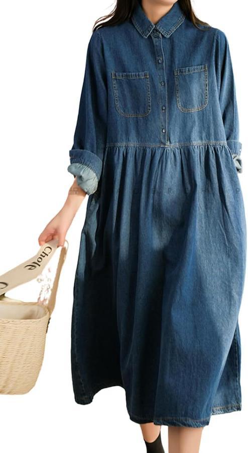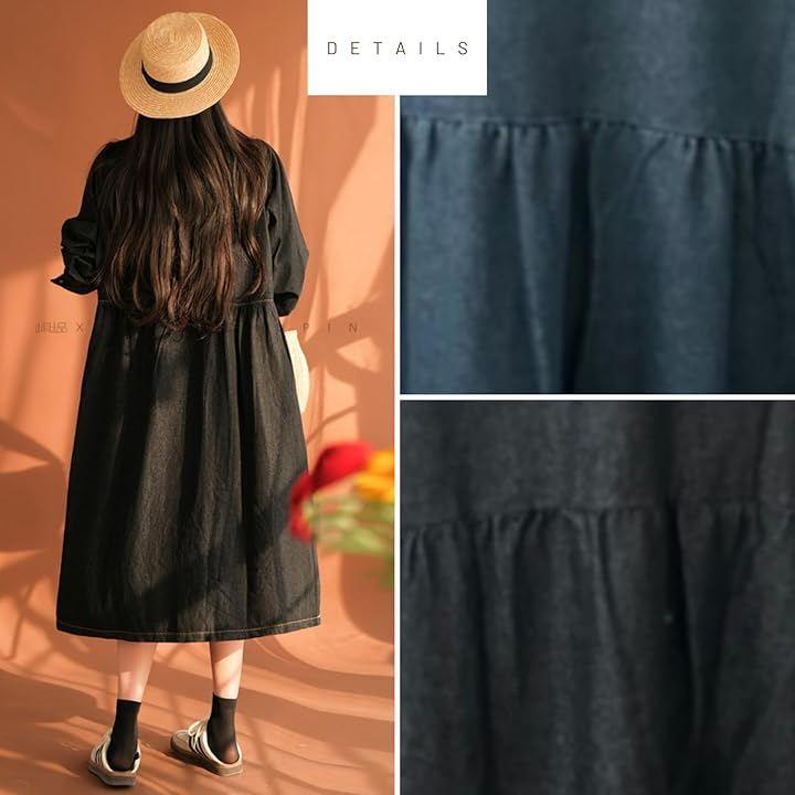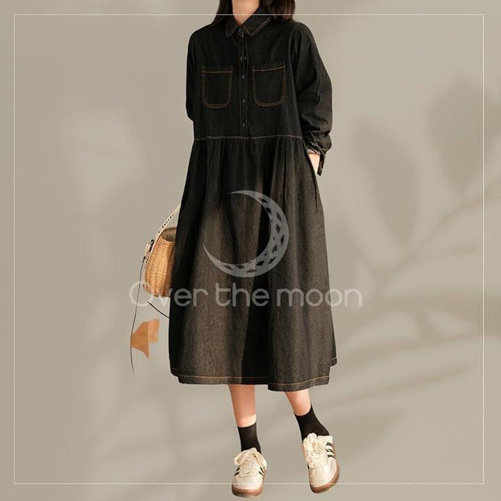 Aラインデニムワンピース ロングシーズン楽しんでいただける襟付きデニムワンピース。