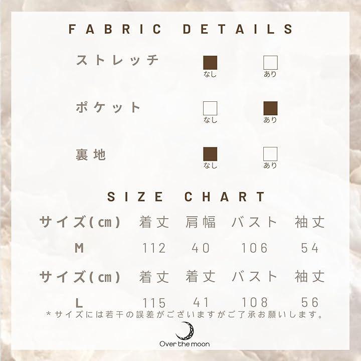 「参考サイズ」 「M」着丈112 肩幅40 バスト106 袖丈54 「L」着丈115 肩幅41 バス108 袖丈56