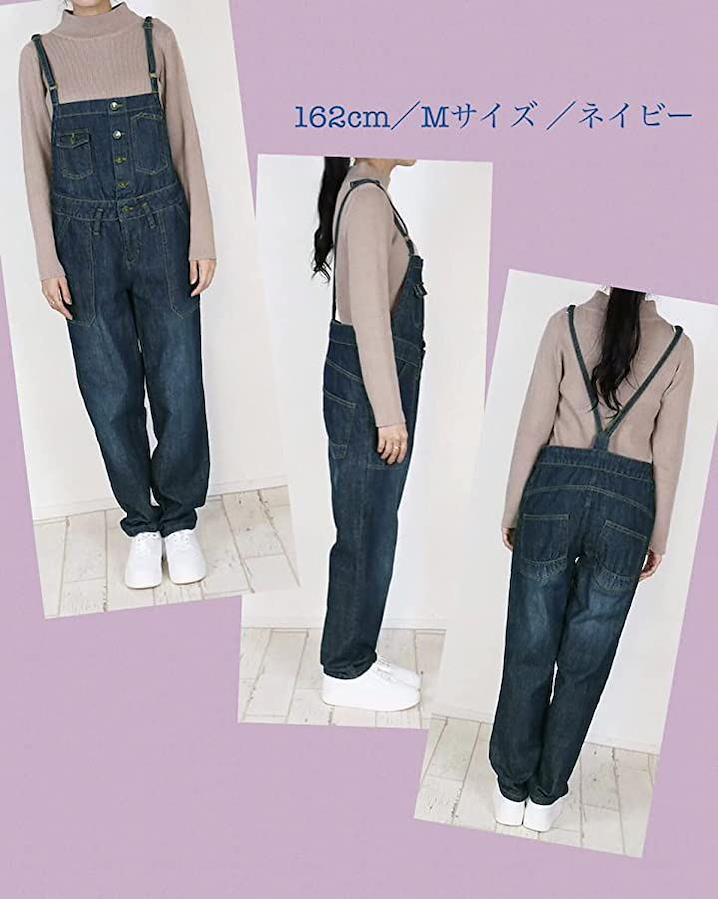 デニム サロペット オールインワン オーバーオール ボトム パンツ 長さ調節可能 レディース 大きいサイズ カジュアル ジーンズ