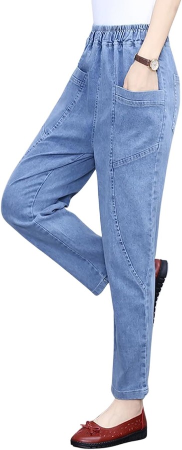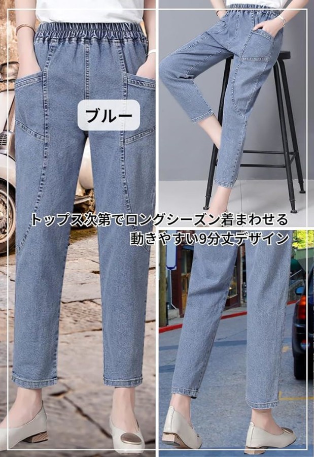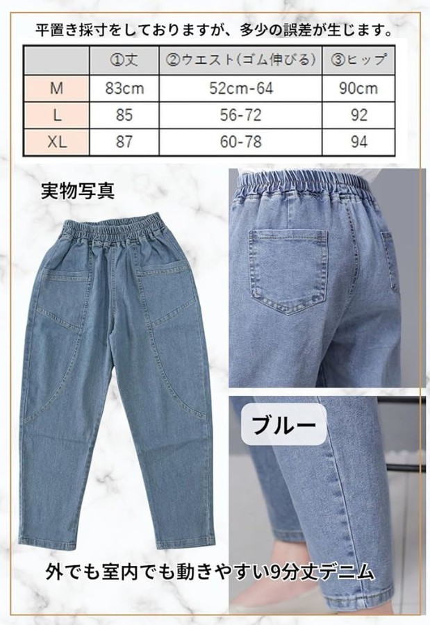 柔らかめのデニム素材でヒップ周りをゆったりとしたウエストゴムのデニムです。