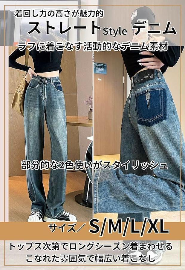 ストレートのシルエットはウエスト部分に比べてヒップや腿周りがゆったりしているので、体型カバーも出来るのが人気です。