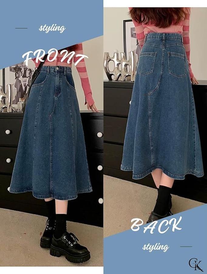 「美しく揺れるフレアシルエット」程よく広がるフレアデザインが上品で女性らしい印象を演出するデニムロングスカートです。