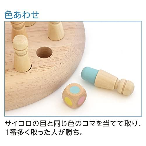 通常1-5営業日で発送:【特徴】子供から大人まで、夢中になれる知育ゲーム。色合わせや色揃え、神経衰弱など複数の遊び方が楽しめる!※詳しくはパッケージに入っている「遊び方説明書」をご覧ください。【サイズ】ゲーム盤:Φ168×H20mmコマ:Φ14×H45mmサイコロ:W15×D15×H15mm【商品重量】400g(包装資材含む)【材質】天然木