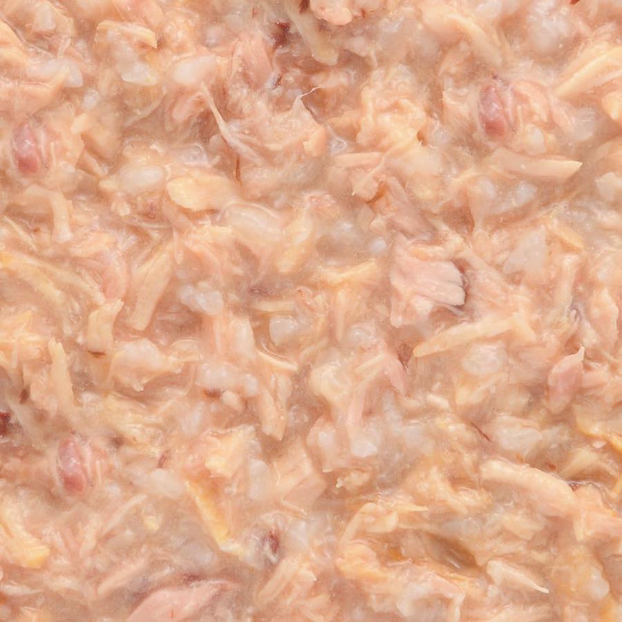 まぐろの白身と鶏ささみを食べ応えのある大きめのフレークに仕上げ、白米を加えました。まぐろにはEPA・DHAが含まれています。