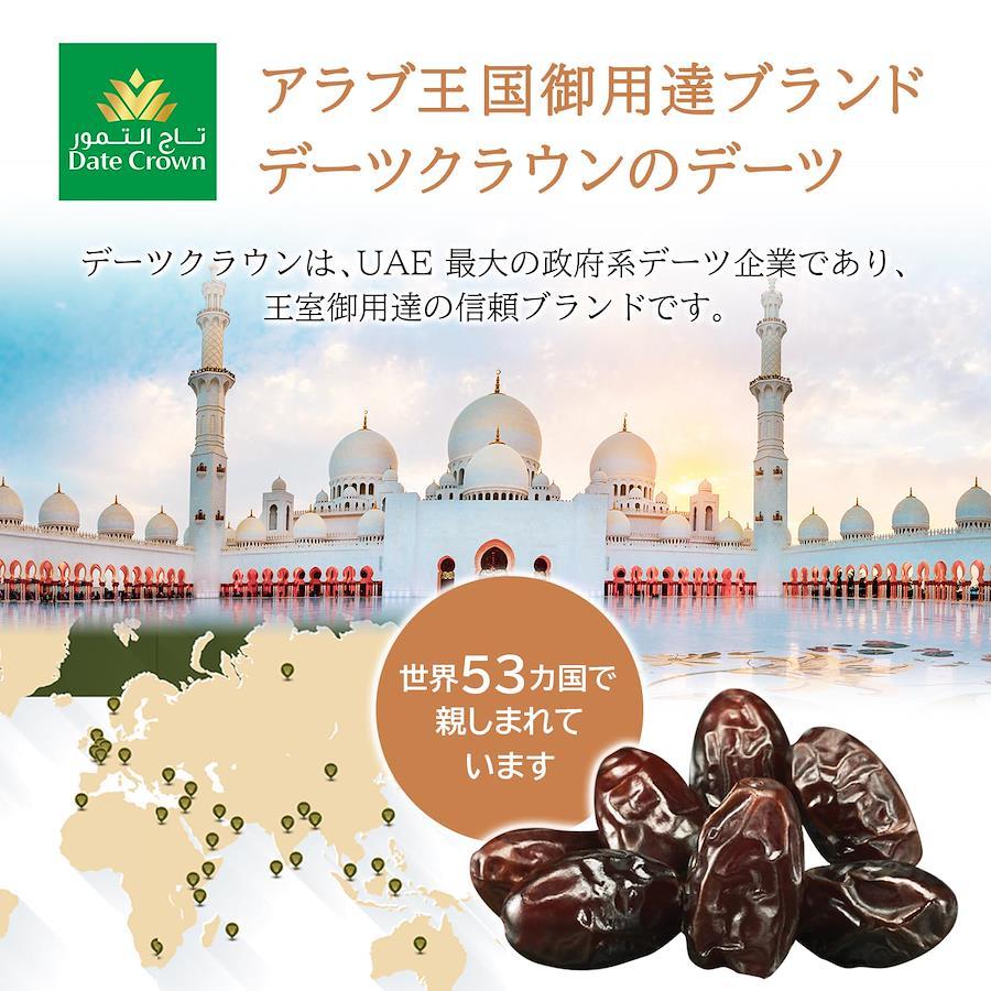 3営業日以内に発送≪新品未開封品≫【まさにデーツクラウン(デーツの王冠)】Date Crown(デーツクラウン)はアラブ王国御用達のブランドで、世界48か国で親しまれている世界最大のデーツブランドの一つです。アルフォア社(UAE) のインターナショナルブランドが、UAE産の完熟デーツの中でもより高い基準をクリアした高品質なデーツを日本にお届けしています。【本来のデーツの味を楽しむ】デーツクラウンのデーツは、種入りです。種抜きは実をカットするため少し硬い食感ですが、デーツクラウンは種入りのためデーツ本来の柔らかさを味わうことができます。本場のデーツを本場の食べ方で、それがデーツクラウンのこだわりです。無添加、砂糖不使用、オイル不使用、非遺伝子組換え、残留農薬検査済(日本)のデーツです。【クナイジ種】黒色で黒糖のような濃厚な甘さと旨味が特徴のクナイジ種。原産地の中東では、その黒色の粒からブラックビューティーとも呼ばれています。黒蜜のようなキレの良い甘さは、デーツを初めて食べる日本人の方にもオススメです。【スーパーフードのデーツ】スーパーフードのデーツは、一粒に栄養素がぎっしり。食物繊維・カリウム・マグネシウム・鉄・各種ビタミンなど栄養素がたっぷり含まれており、その栄養素の高さから、中東ではラマダンの断食後にデーツが重要な栄養補給源として食べられています。原材料:デーツ クナイジ種 (500g) 保存方法:高温多湿を避け、冷暗所にて保存。※洗浄後には十分な選別を行っておりますが、稀に虫が混入していることがございます。デーツは天然の実であり、100%の防止は困難であることをご了承ください。【重要】メーカーによる商品リニューアルに伴いパッケージ(内容量も含む)変更が行われた場合、新パッケージでお届け致します事ご了承願います。