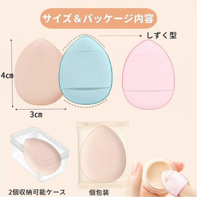 商品の説明【細かいディテールにこだわったパフ】ミニサイズの指専用パフで、より良いディテールを簡単に実現でき、メイクをプロ級の仕上がりに、あなたの美しさを輝かせます。【水あり水なし両用タイプ】水を使わなければ、メイクパウダーで乾燥した状態を保ち、肌にファンデーションなどを使うことができます。水あり場合は、メークパフを濡らしてギュッと絞ってから使いましょう。こうすることで薄付きに仕上げて、ファンデの密着度が上がり、崩れにくくなります。【ファンデを吸収しすぎずエアインパフ】三層構造に加工されたメイクパフは高密度ウレタンを採用、ファンデを程よく含み、均一なベースメイクを簡単に仕上げます。肌への密着力や耐久性が高く、崩れにくい理想的なベースメイクをかなえるアイテムです。【お手入れ方法】➀各専用クリーナーに使用方法が記載されています。記載の方法に従って洗いましょう。洗面器にぬるま湯を張り、中性洗剤を加えて混ぜて、パフを入れて揉み込みすぎに押し洗いすることです。【サイズ】幅3長さ4【内容量】しずく型2色ピンク10個とブルー10個)【素材】親水性ポリウレタン、スポンジ、puレザーの三層構造に加工されました。使用方法【使用方法】➀メイクパフを濡らしてギュッと絞り、メイクパウダーで乾燥した状態を保ちます。➁ファンデーションなどを使う場合は、メークパフを濡らしてギュッと絞ってから使い、薄付きに仕上げて、ファンデの密着度を上げ、崩れにくくします。【お手入れ方法】➀各専用クリーナーに使用方法が記載されています。記載の方法に従って洗いましょう。洗面器にぬるま湯を張り、中性洗剤を加えて混ぜて、パフを入れて揉み込みすぎに押し洗いすることです。安全警告・本品の用途以外のご使用はおやめください。・お肌に合わない時は、ご使用をおやめください。・パフに過度な力を加えないでください。破損する恐れがございます。・パフの風合いや肌触りに変化があったら、お取替えください。