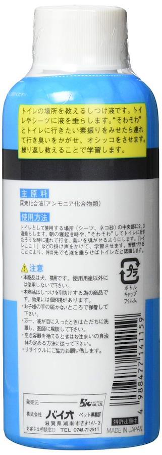 トイレとして使用する場所(シーツ、ネコ砂)の中央部に2.3滴垂らします。麻の寝起き時や、「そわそわ」してトイレにいきたそうな時に連れて行き、臭いを嗅がせるようにします。「トイレここ!」などの掛け声をかけて学習させます。習慣ふけることにより、外出先でも液をたらせばトイレだと認識します。