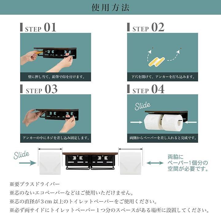 *必ず両サイドにトイレットペーパー1つ分のスペースがある場所に設置してください。