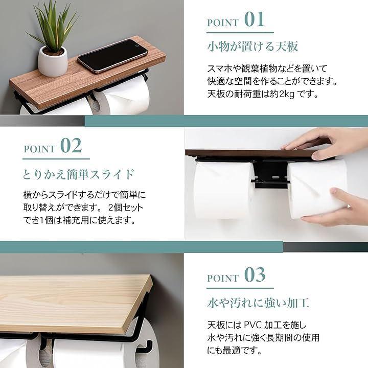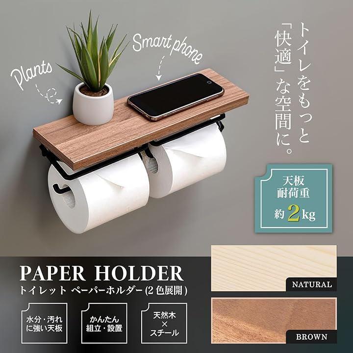 洗練されたシンプルデザイン:どんな壁紙にもマッチする2連タイプのトイレットペーパーホルダー。