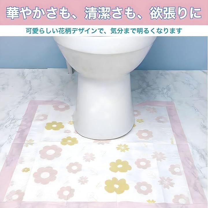 「トイレマット 使い捨て 個包装」は、可愛らしいピンクベースの花柄トイレマットです。