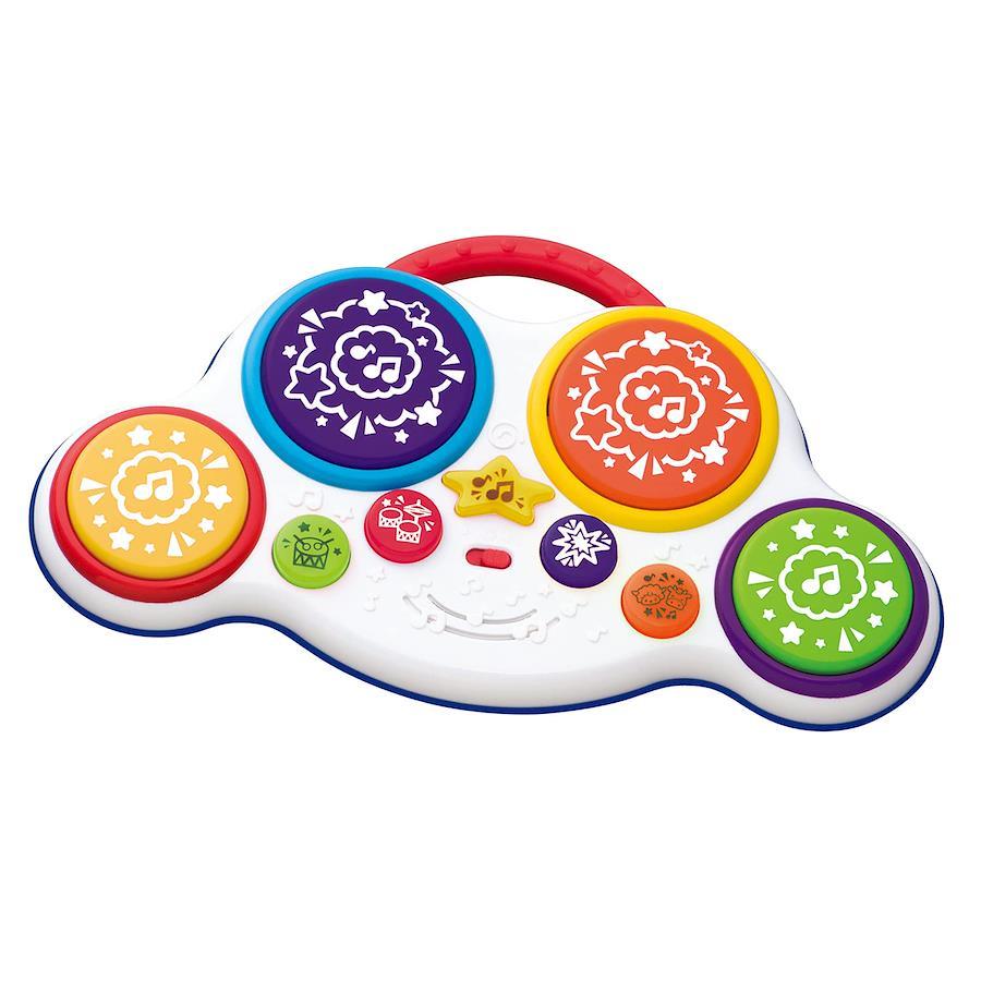 【赤ちゃん大好き!リズムで遊ぼう】 32種類のユニークな音をたたいたり、リズムにあわせてたたいたり様々な機能が付いています! 4つのモードに、メロディが響くモード付き。32のユニーク音に、10曲のメロディ入り。 【出産祝いやプレゼントに】 男の子も女の子も楽しく遊べて、音感を養える可愛いおもちゃ。 お子様やお孫様、お友達や親戚、お世話になった方への出産祝いや誕生日プレゼント、ギフト、贈り物にもおすすめです。 【使い方】 ・緑のボタン:押すとライトが点灯しドラム音が選択。もう一度押すと、別パターンのドラム音が選択されます。 ・赤のボタン:押すとライトが点灯し効果音が選択。もう一度押すと別の効果音が選択。 ・黄色のボタン:押すとライトが点灯し曲が流れます。もう一度押すと曲の切り替え。 ・紫のボタン:押すとライトが点灯しゆかいな音が選択。もう一度押すと別パターンのゆかいな音が選択されます。 ・オレンジのボタン:押すとライトが点灯し動物の鳴き声が選択。もう一度押すと別パターンの動物の鳴き声が選択。 【商品詳細】 対象年齢:10ヵ月から 安全基準:STマーク ※単四乾電池3本使用(電池は別売りのため別途ご購入ください。)" トイローヤルの正規品(新品・未開封)は販売元【.co.jp】のみで販売しております。公式店以外でご購入いただいた商品のご返品等の対応は致しかねます。 【赤ちゃん大好き! リズムで遊ぼう】 32種類のユニークな音をたたいたり、リズムにあわせてたたいたり様々な機能が付いています。4つのモードに、メロディが響くモード付き。32のユニーク音に、10曲のメロディ入りです。男の子も女の子も楽しく遊べて、音感を養える可愛いおもちゃ。お子様やお孫様、お友達や親戚、お世話になった方への出産祝いや誕生日プレゼント、ギフト、贈り物にもおすすめです。 【使い方その1】・緑のボタン:押すとライトが点灯しドラム音が選択。もう一度押すと、別パターンのドラム音が選択。・赤のボタン:押すとライトが点灯し効果音が選択。もう一度押すと別の効果音が選択。・黄色のボタン:押すとライトが点灯し曲が流れます。もう一度押すと曲の切り替え。 【使い方その2】・紫のボタン:押すとライトが点灯しゆかいな音が選択。もう一度押すと別パターンのゆかいな音が選択。・オレンジのボタン:押すとライトが点灯し動物の鳴き声が選択。もう一度押すと別パターンの動物の鳴き声が選択。 【商品詳細】安全基準:STマーク/ 対象年齢:10ヵ月以上 / 注意事項:単四乾電池3本使用(※別売)【STマークについて】Safety Toy(安全な玩具)を表し、検査機関の検査で、一般社団法人日本玩具協会の玩具安全(ST)基準に合格した玩具に表示できるもので、「安全面について注意深く作られたおもちゃ」として玩具業界が推奨するものです。