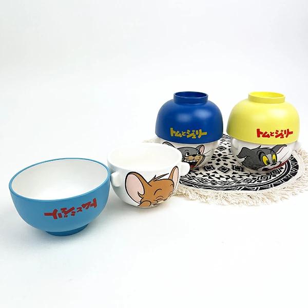 トムとジェリーの汁椀茶碗セットミニです。フェイス柄がキュート☆小さめなのでお子様用にもおすすめ◎電子レンジ使用可◎【サイズ】茶碗:6cm×9cm×9cm、汁椀:5.7cm×10cm×10cm