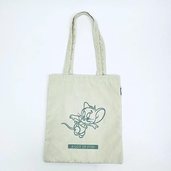 トムとジェリー(タフィー)のフロッキー配色トートバッグです。長めの持ち手なのでアウターの上からも肩掛けしやすく、A4サイズもすっぽり入るので普段使いしやすい万能バッグ☆内ポケット付きなのでバッグの中で迷子になりやすい小物も整理しやすいのが◎同じデザインのポーチやラバーチャームがあるので統一すれば可愛さMAX♪トムとジェリーのフレンズシリーズなのでトムジェリ好きにはたまりません!!コーデュロイ生地との組み合わせでシンプルながらも温かみがあるのがポイントなのでぜひこの秋冬のコーディネートのお供にいかがですか?【持ち手:650mm】