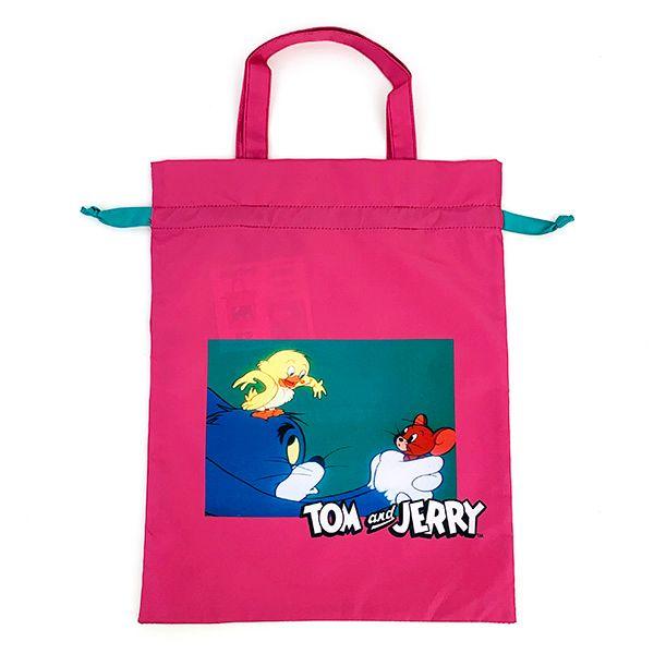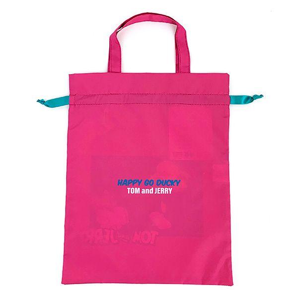 ポップなカラーとデザインがかわいいトムジェリの巾着バッグ。ポリエステル素材で軽くて嵩張らないのでサブバッグとして使うのもおすすめです♪