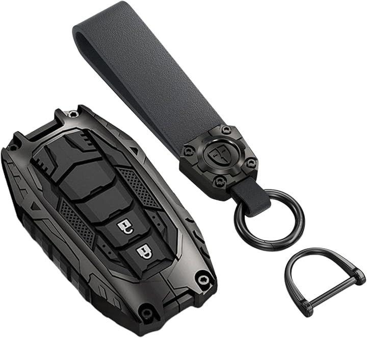 * 商品仕様 素材: 亜鉛合金、シリコン 適合タイプ: トヨタ スマートキー Fタイプ カラー: ブラック / シルバー 同梱物: カバー本体、ストラップ、キーリング、取付工具