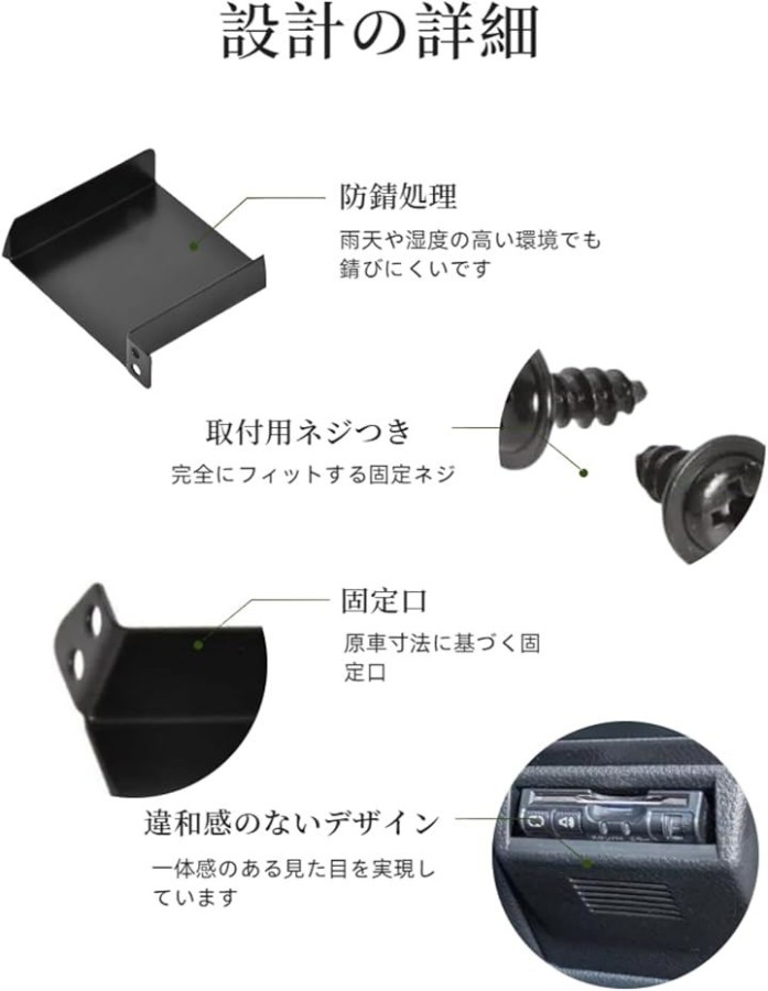 スマートなデザインで車内の美観を損なわず、ETCをしっかりと固定します。