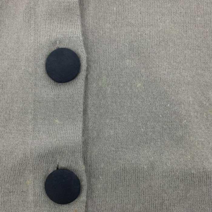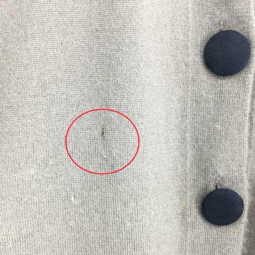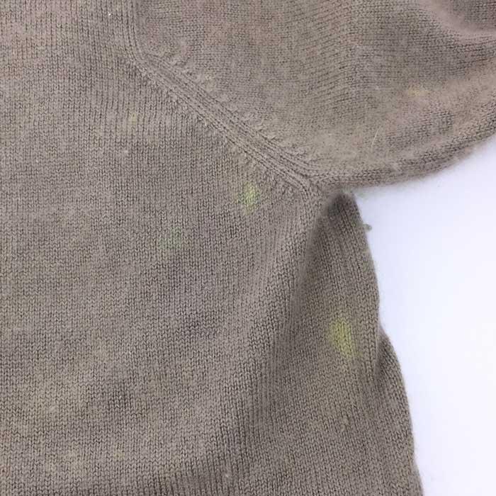 【商品補足説明】 前身頃の右胸辺りに0.3cm程の穴が空いています。1cm以下の汚れが点在しています。毛玉や毛羽立ちがあります。裏側に一部当て布を施してあります。