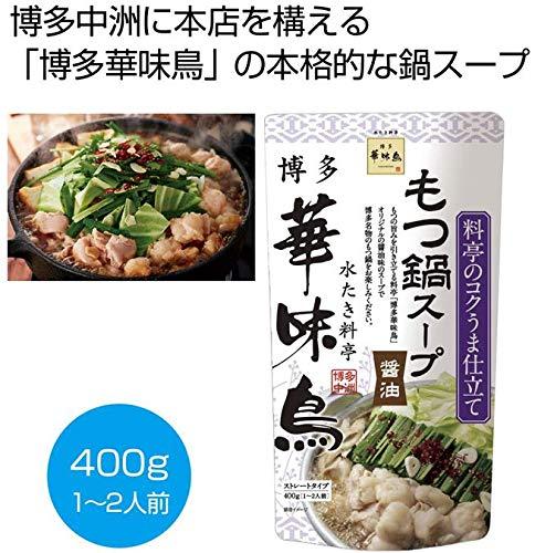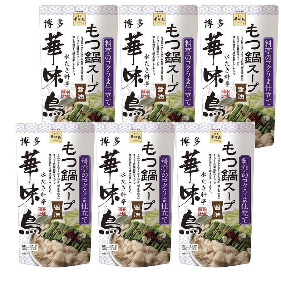 ◆1袋(1~2人前)が6袋入◆内容量:400g×6袋◆そのまま使えるストレートタイプ(1~2人前)です。◆博多中洲に本店を構える、水たき料亭博多華味鳥の味をご家庭で手軽にご賞味いただけます。◆醤油、にんにくなど、素材の旨味を優しくまとめたスープです。まろやかで上品な甘さの水飴が料亭秘伝の隠し味になっております。【重要】メーカーによる商品リニューアルに伴いパッケージ(内容量も含む)変更が行われた場合、新パッケージでお届け致します事ご了承願います。