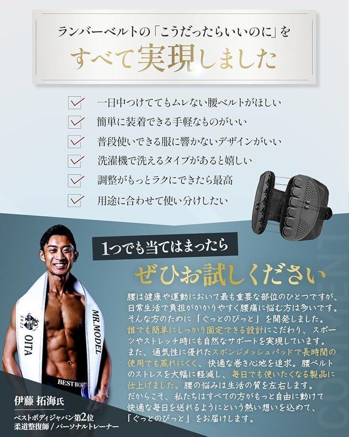 「多数の腰サポーターを見てきた中でも、簡単に、かつしっかり固定できる。