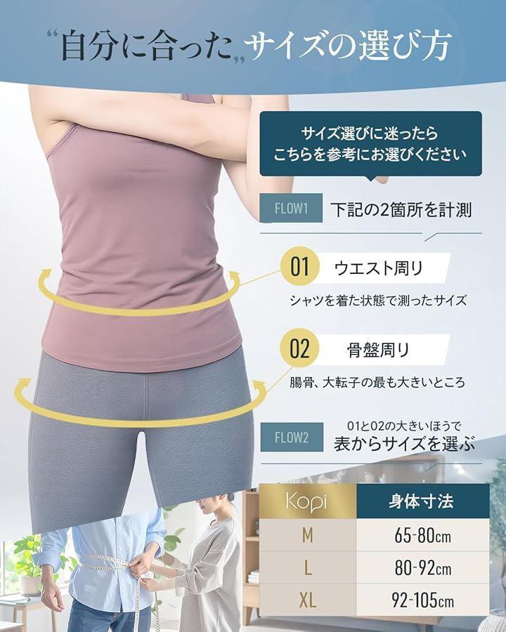 サイズの選び方について M(身体寸法:65~80cm)/ L(身体寸法:80~92cm) / XL(身体寸法:92~105cm) *シャツを着た状態で「1.ウエスト周り」「2.骨盤周り」を測ってください。