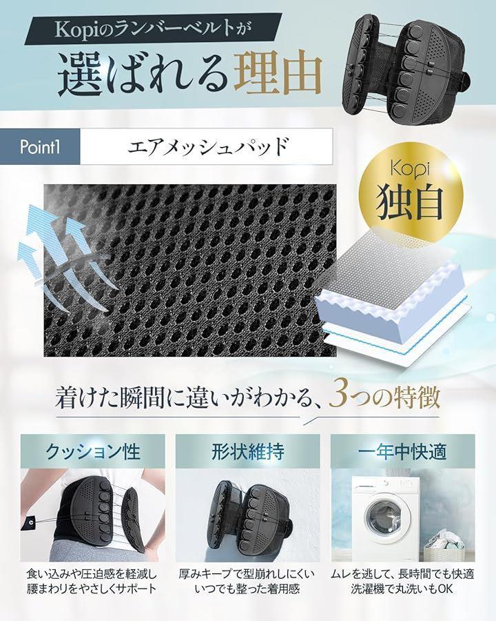 Kopi独自の「スポンジメッシュパッド」構造を採用し、快適性と機能性を両立しました。