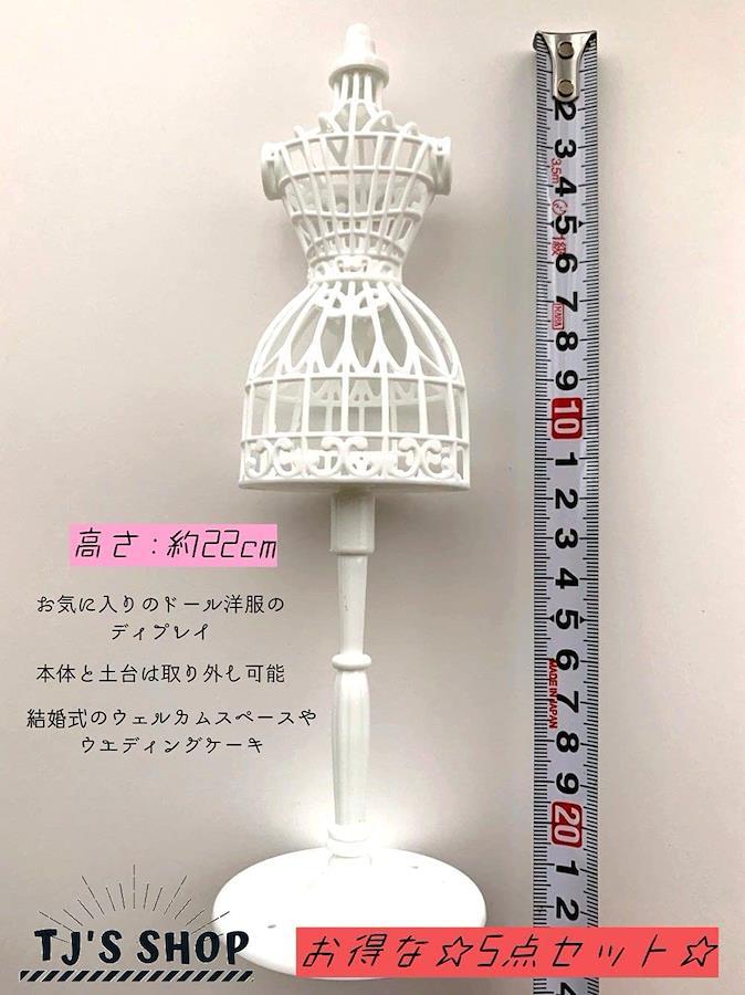 ★お得な5点セット★【商品サイズ】高さ:約22cm 土台:約6.4cm 肩幅サイズ:約4.7cm ウエストサイズ :約2.7cm ヒップラインのサイズ:約6cm【カラー】ホワイト 【素材】プラスチック【重量】約18.5g ご自身のドール洋服のサイズをご確認の上、ご購入をお願いいたします。 【商品特徴】お気に入りのドール洋服をディプレイするのに最適なデザインスタンド。可愛らしいデザインなので、ネックレスやアクセサリーなど小物置きとしてOK!本体と土台は取り外し可能 【こんな時に】大切な人形のディスプレイやインテリア、また結婚式のウェルカムスペースやウエディングケーキにもプラスチックなので、ご活躍いただける商品。誕生日、大切な方へひと味違ったプレゼントにも♪ 販売元:TJ's shopは1つ1つ丁寧に検品、即日発送・到着を心掛けております。【安心保証】商品に関して問題や不具合がある場合は、ご遠慮なく弊社にてお問い合わくださいませ。お客様が満足できますよう最善を尽くします。手動測定のため、サイズに誤差がある場合があります。予めご了承くださいませ。