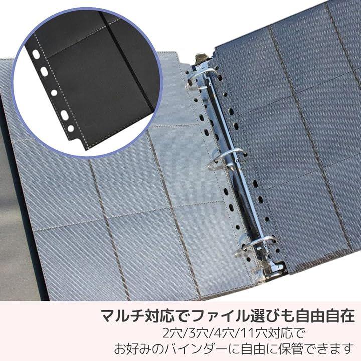1シートに18枚、50枚セットで最大900枚収納可能。2穴/3穴/4穴/11穴対応で、お好みのバインダーに自由に保管できます。